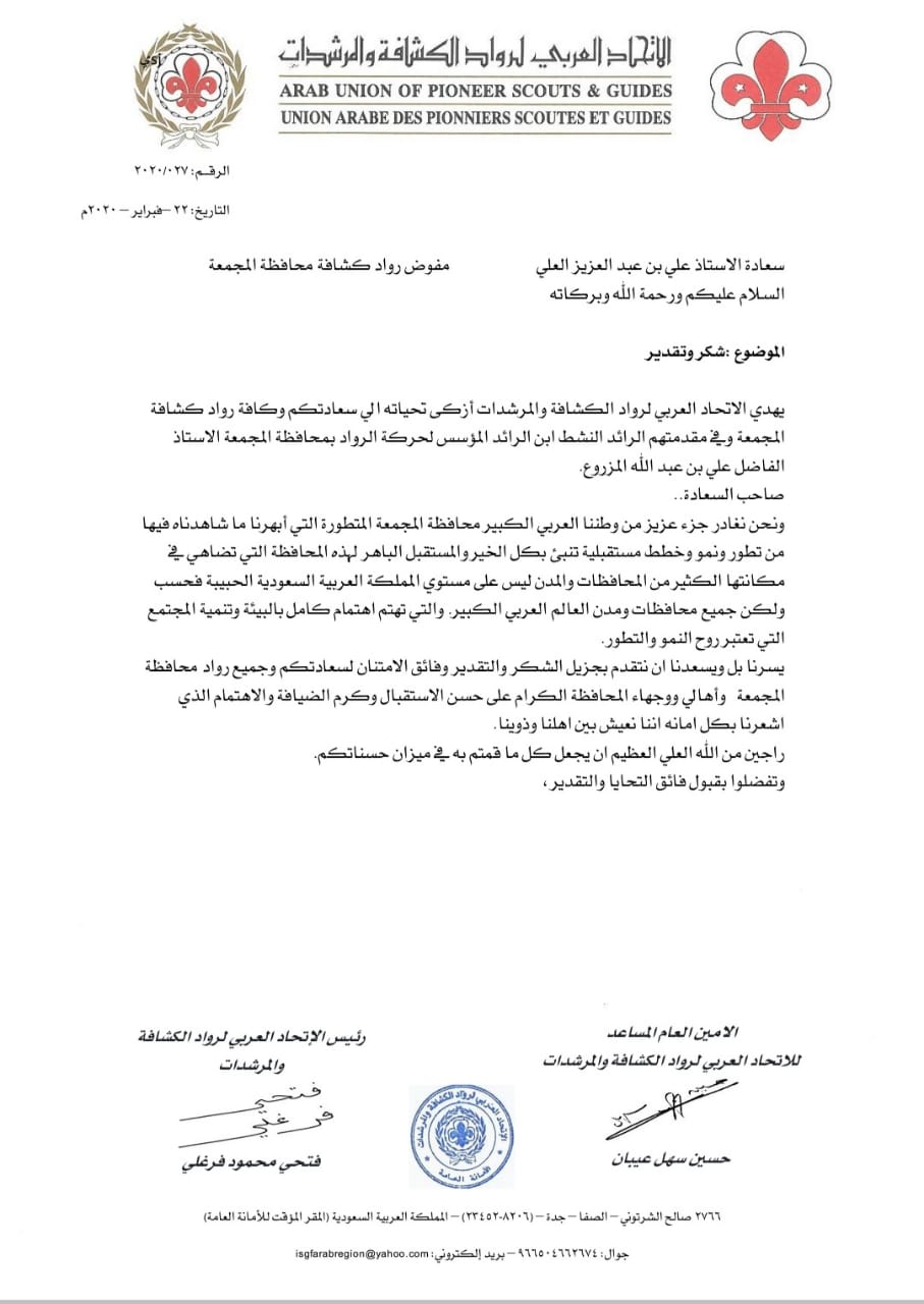 الإتحاد العربي لرواد الكشافة و المرشدات V Twitter بعث رئيس